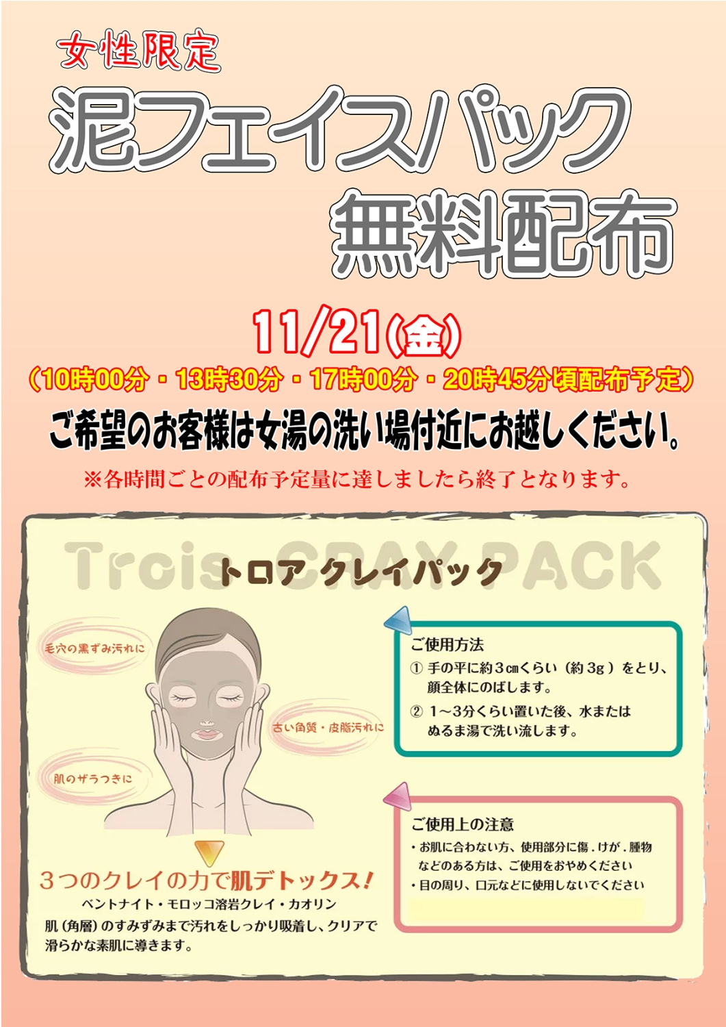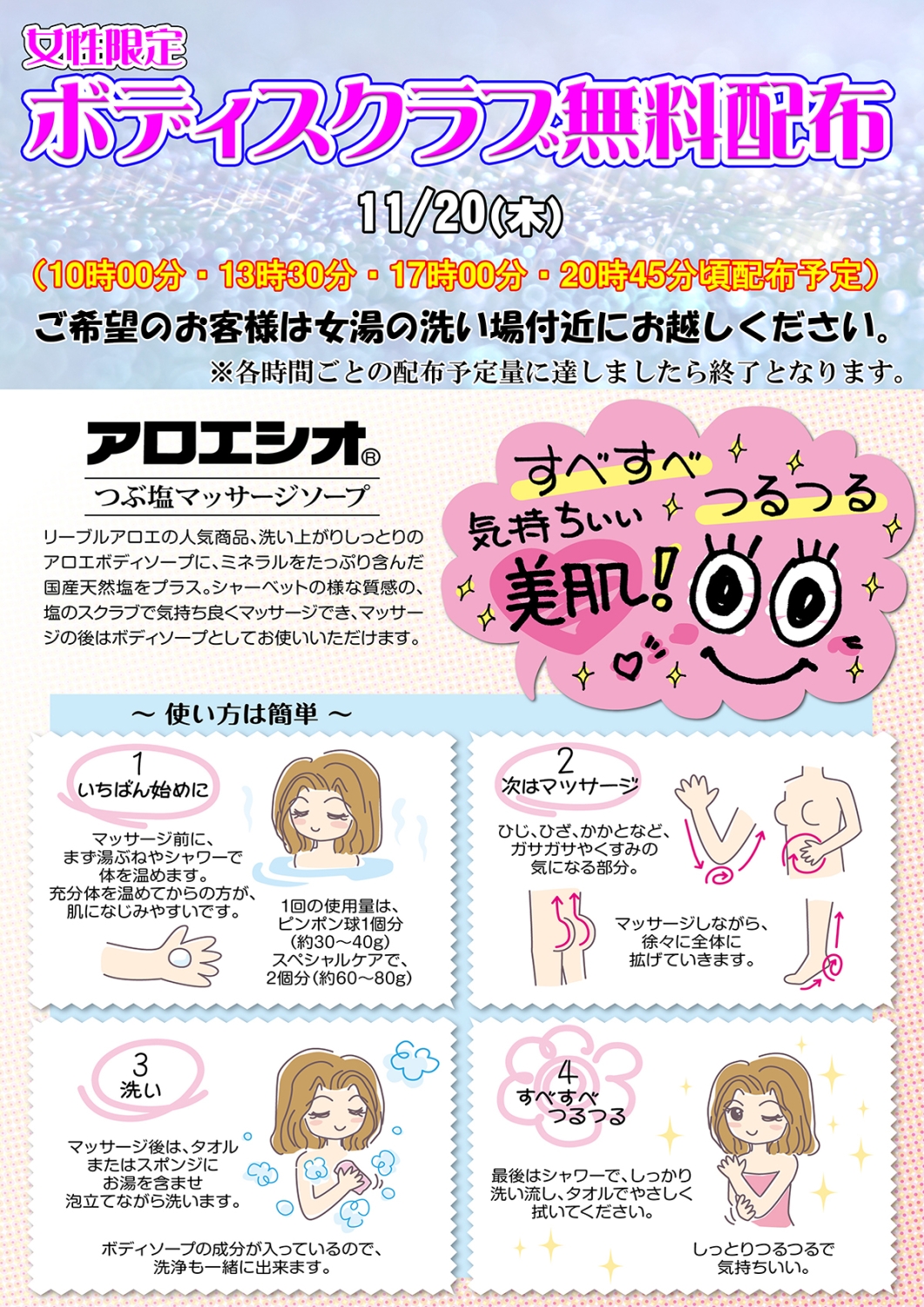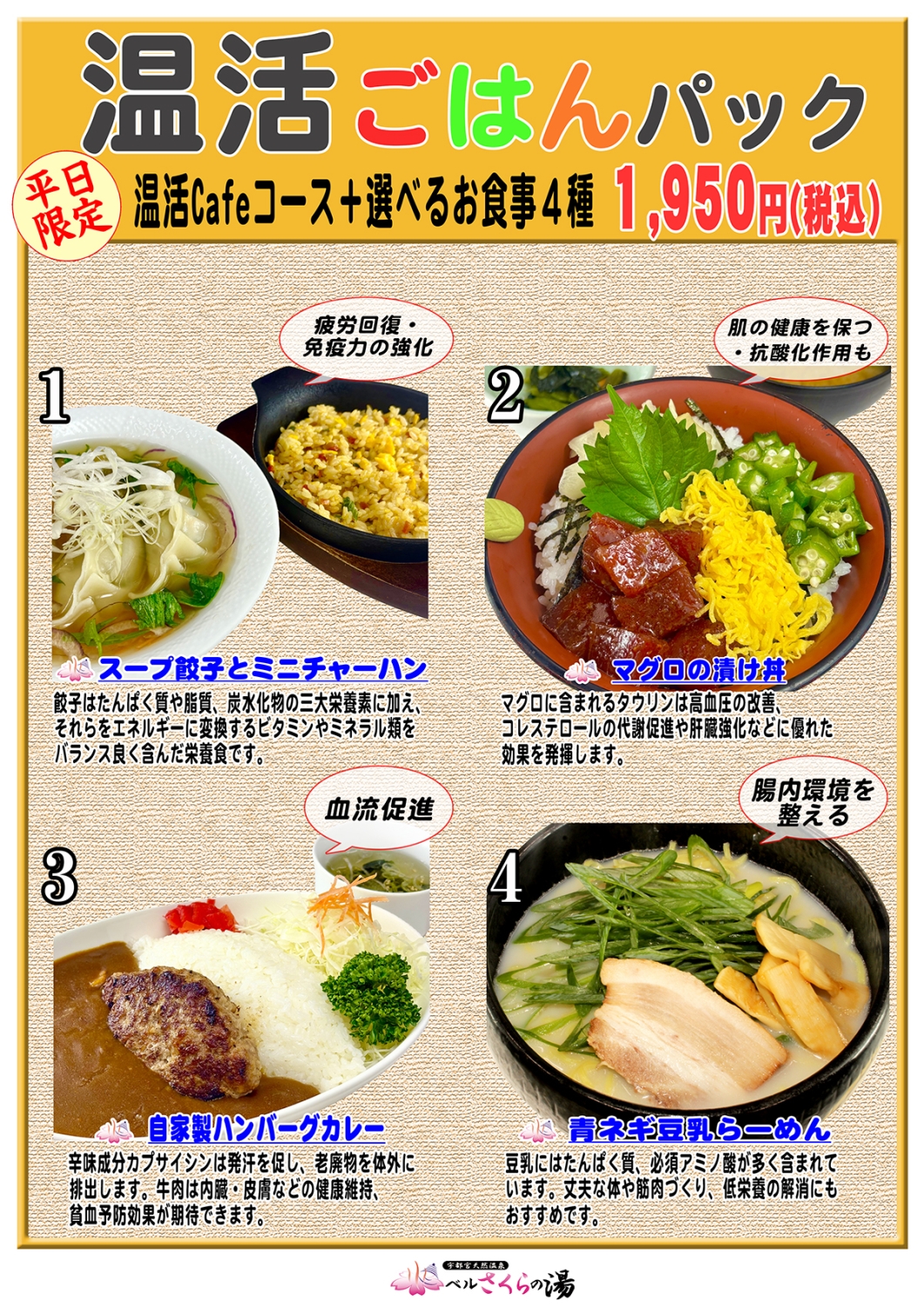 ※上記の時間に会員カード提示で受付すると『入浴コース』が750円