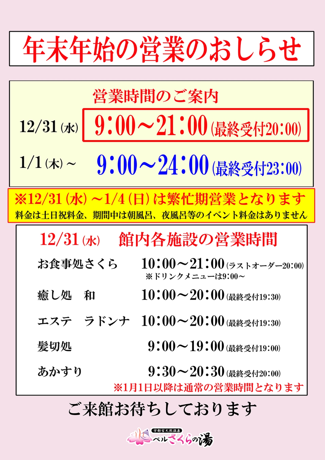 ※上記の時間に会員カード提示で受付すると『入浴コース』が750円