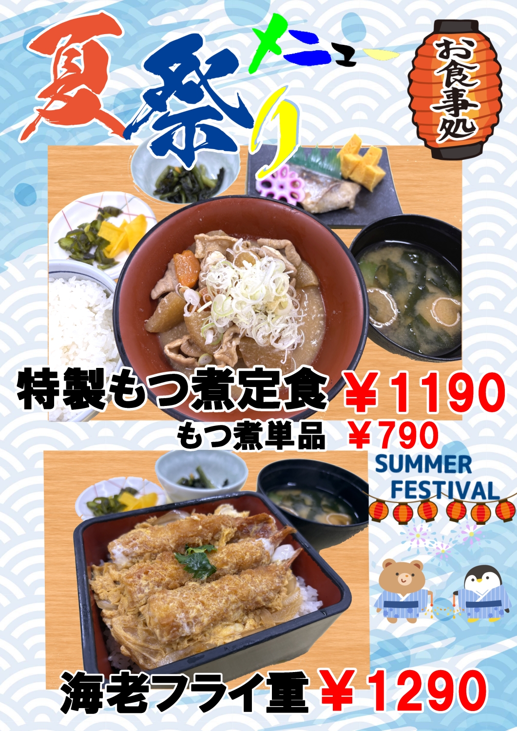 『特製もつ煮定食』と『海老フライ重』をご用意