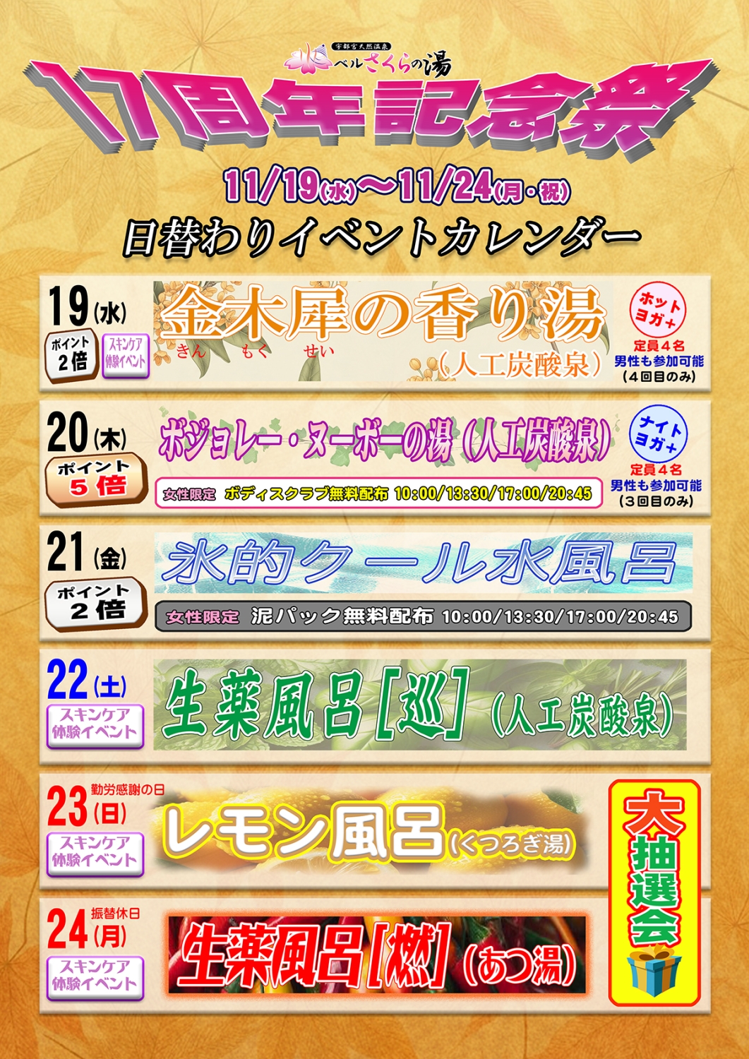 【11/9まで休業中】17周年情報